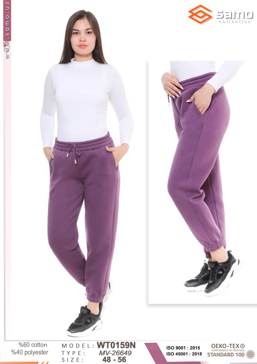 0159 Брюки женские внизу на резинке футер 3-х нитка начес фиолетовый (56)