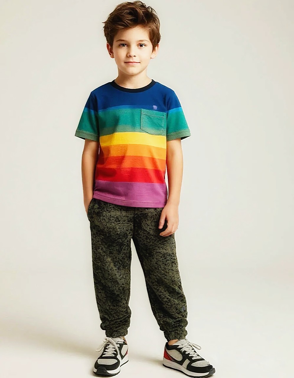 10042 Брюки-джоггеры детские футер 2-х нитка зеленый мрамор (76-146)