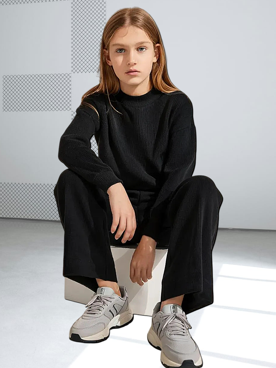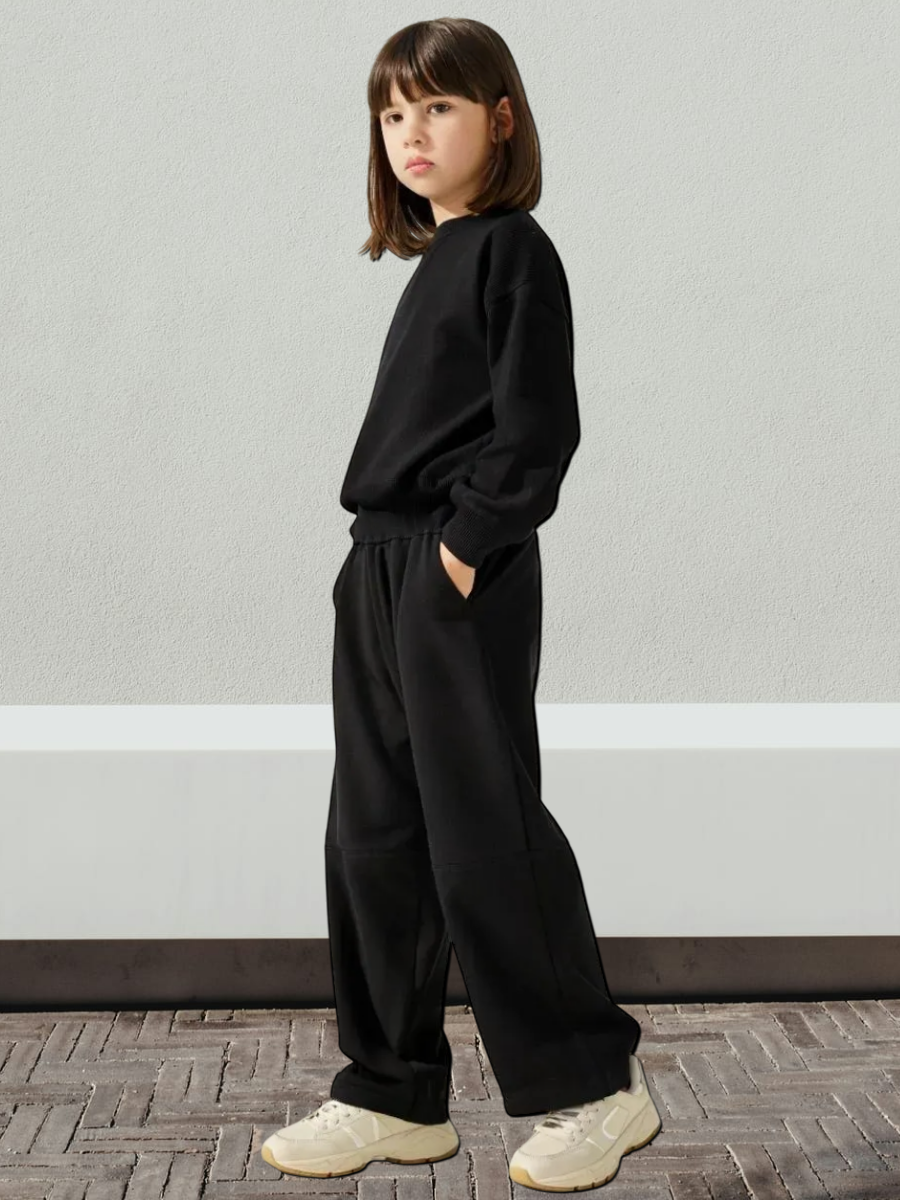 10049 Брюки детские палаццо футер 3-х нитка начес черные (88-164)