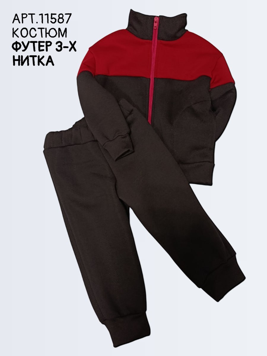 11587 Костюм детский на кокетке футер 3-х нитка начес черный/красный (52-86)