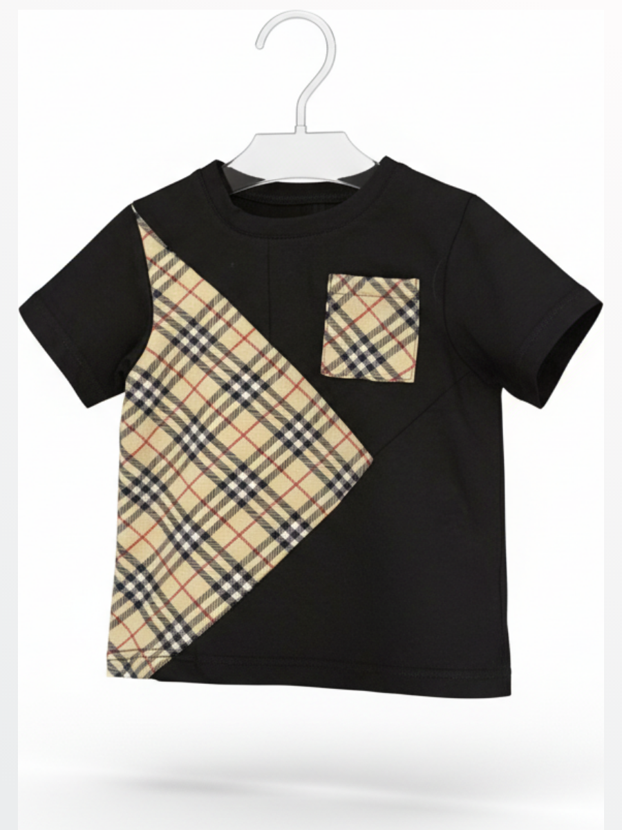 14012 Футболка детская комбинированная кулирка черный/клетка (56-98)