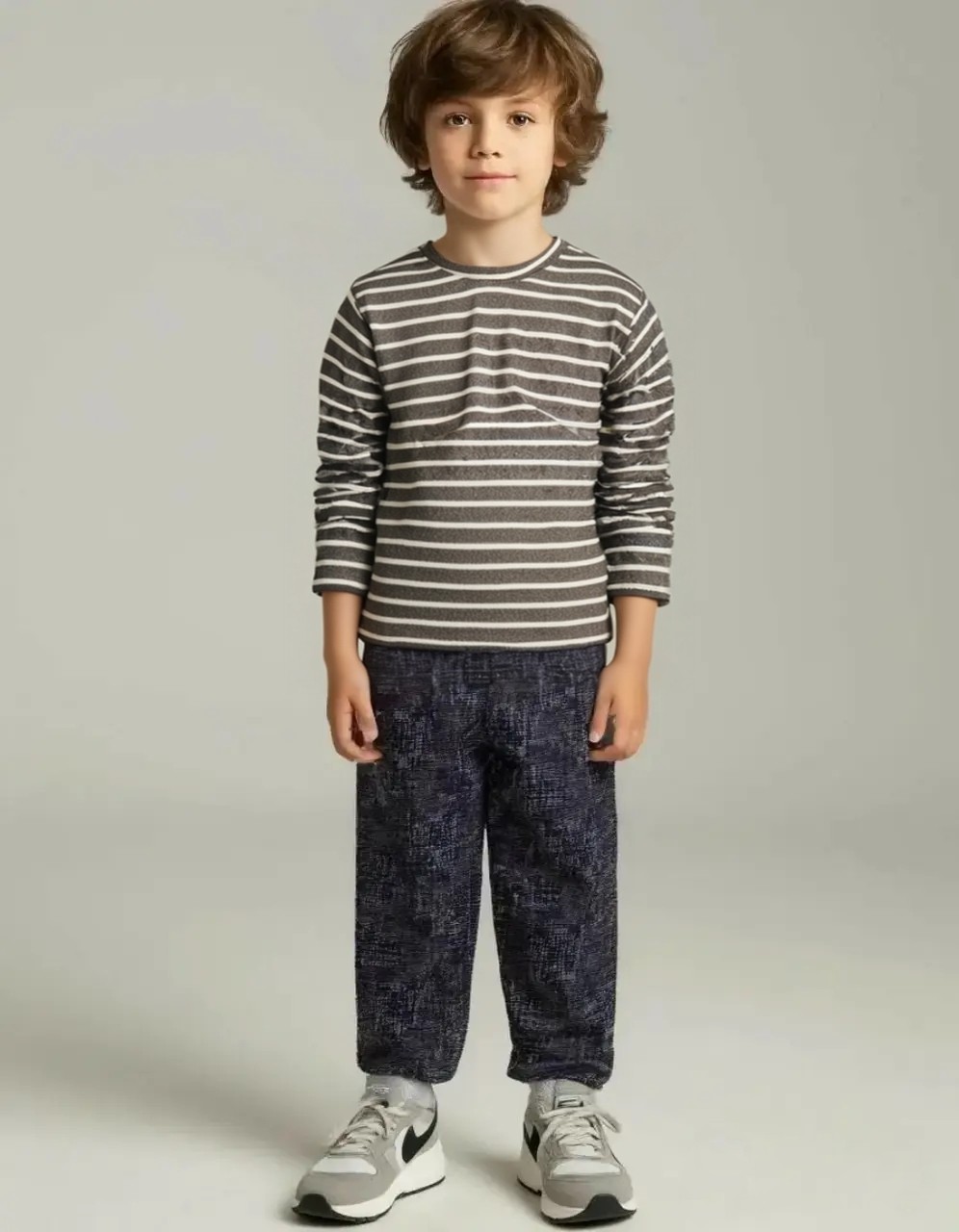 1404 Лонгслив детский пике серо/белая полоска (60-116)