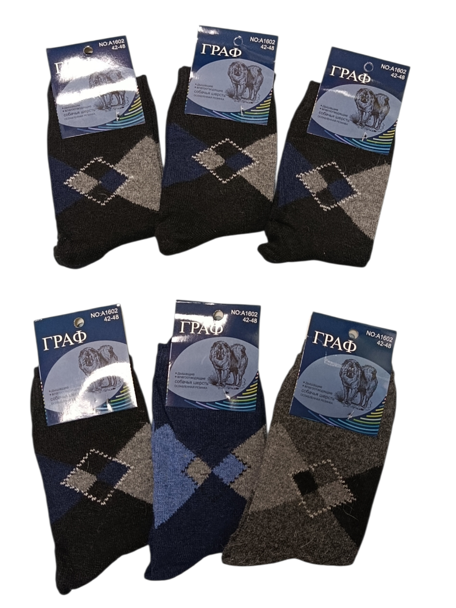 1602 Носки мужские из собачьей шерсти с ослабленной резинкой (42-48)