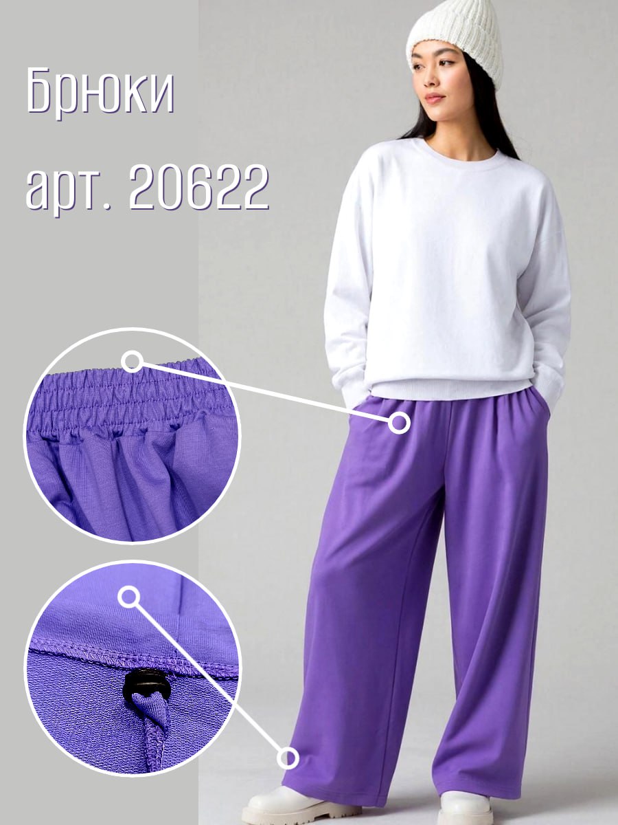 20622 Брюки женские палаццо внизу на резинке футер 2-х нитка фиолетовый (52)
