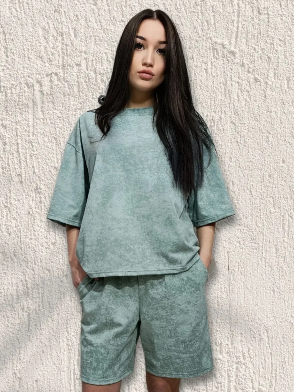 2223 Шорты женские кулирка с лайкрой мрамор полынь (54)