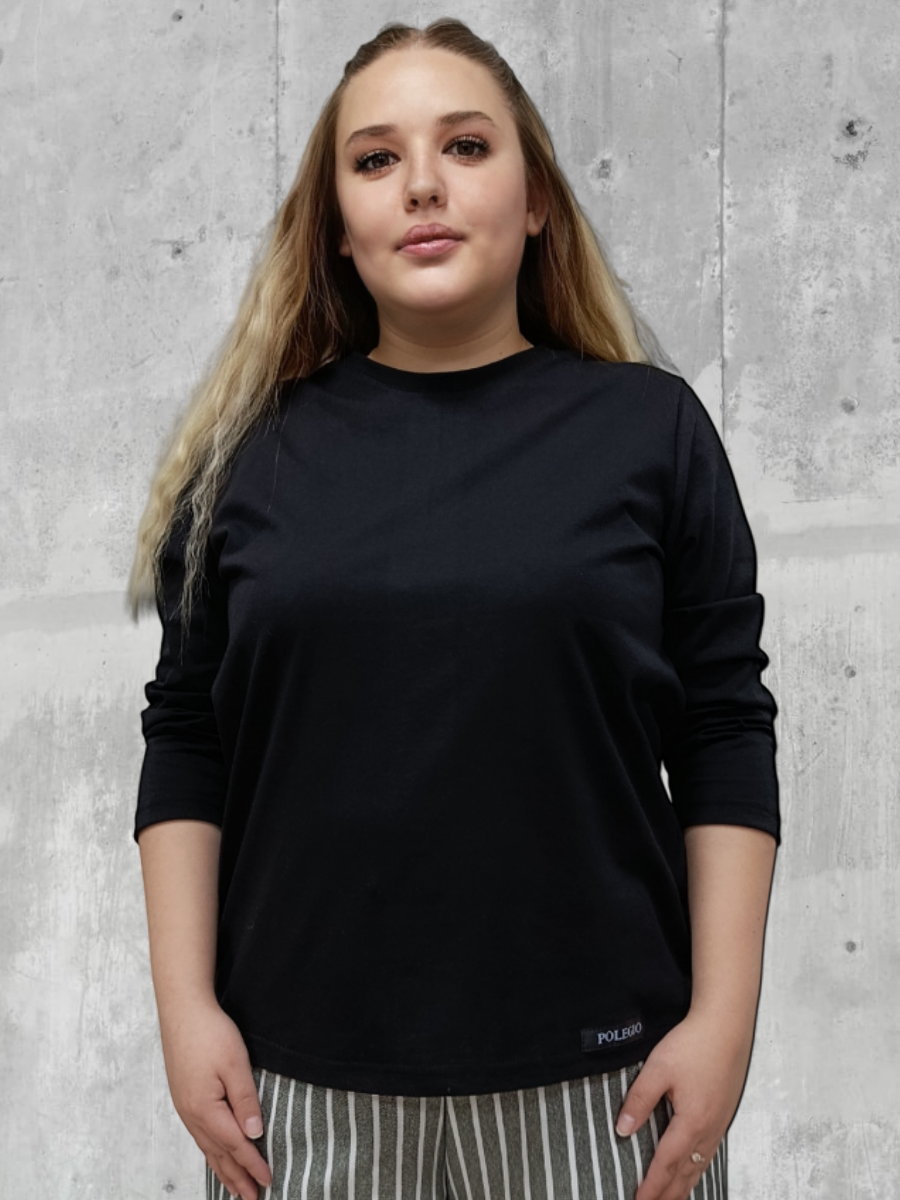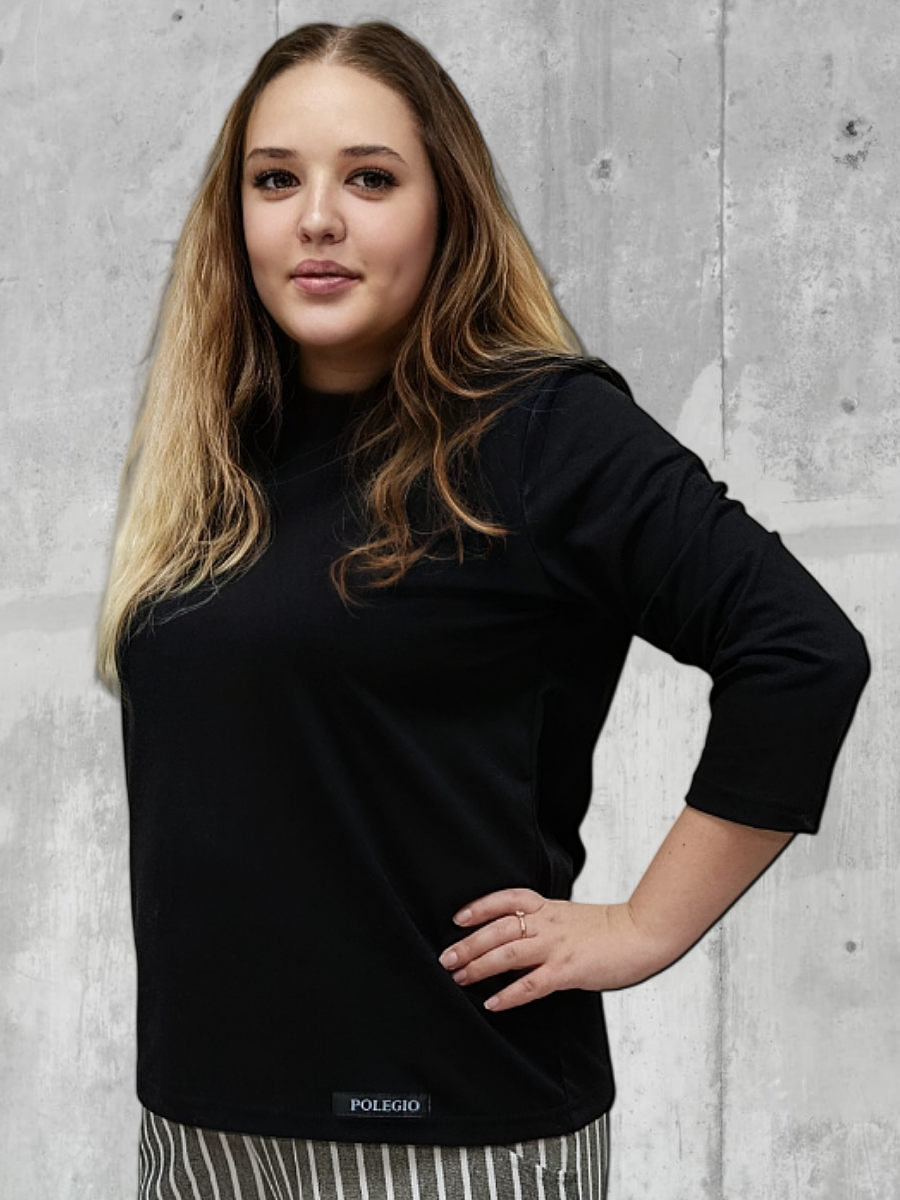 24417 Джемпер женский, рукав 3/4 с нашивкой кулирка черный (60)