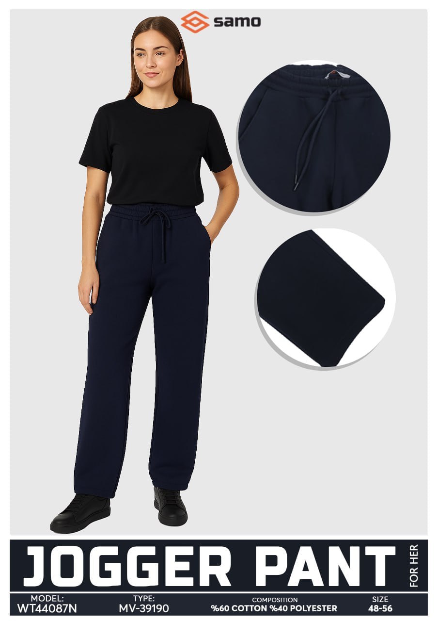 44087 Брюки женские прямые футер 3-х нитка начес темно-синий (56)